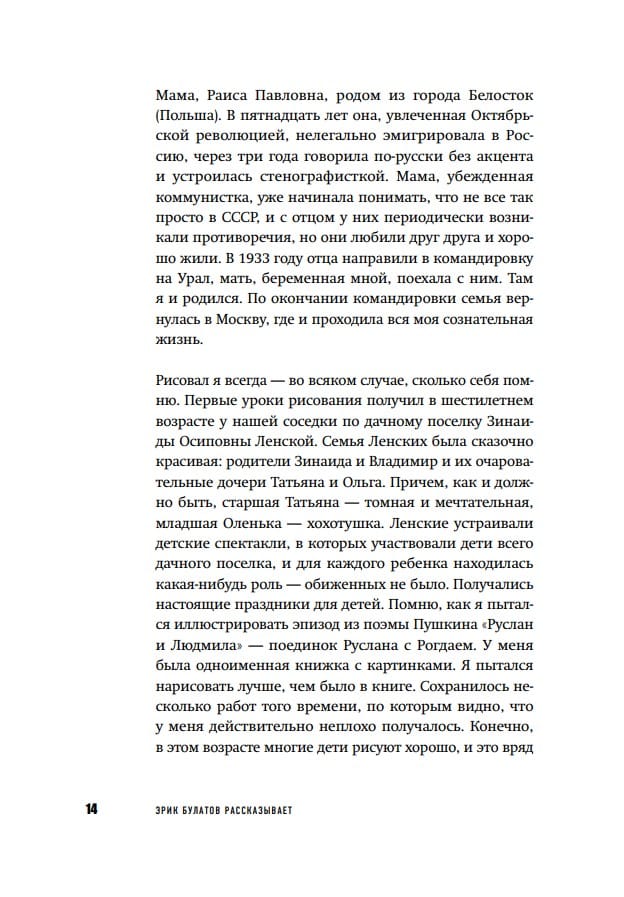 An autobiography by Erik Bulatov (b. 1933), one of the founders of Sots Art and one of the most cherished contemporary Russian artists. In the book, he recalls his childhood, growing up, his journey into the world of art, and his seminal encounters with Falk, Favorsky, and Fonvizin, reflecting on painting and creativity. The second part of the book features recollections of the artist from his friends and associates—Elvira Nabiullina, Zelfira Tregulova, Marina Loshak, Lev Rubinstein, Semyon Faibisovich, and others.