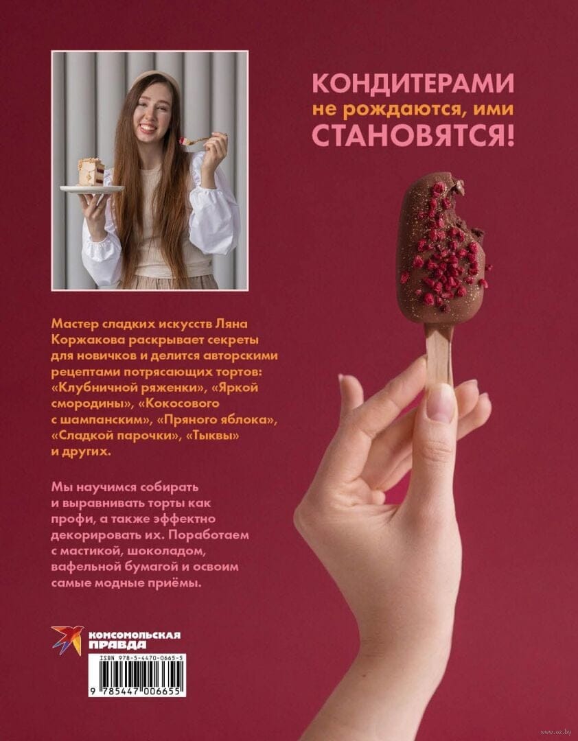Master of sweet arts Lyana Korzhakova reveals the secrets for beginners and shares her author's recipes for stunning cakes: "Strawberry Ryazhenka", "Juicy Currant", "Coconut with Champagne", "Spicy Apple", "Sweet Couple", "Pumpkin" and others. We will learn how to assemble and level cakes like a pro, as well as decorate them spectacularly. We'll work with mastic, chocolate, waffle paper and learn the most fashionable techniques. Even more visually useful information can be obtained by cuar codes on the pages of the book - video lessons from the author. Pastry chefs are not born, they become them.