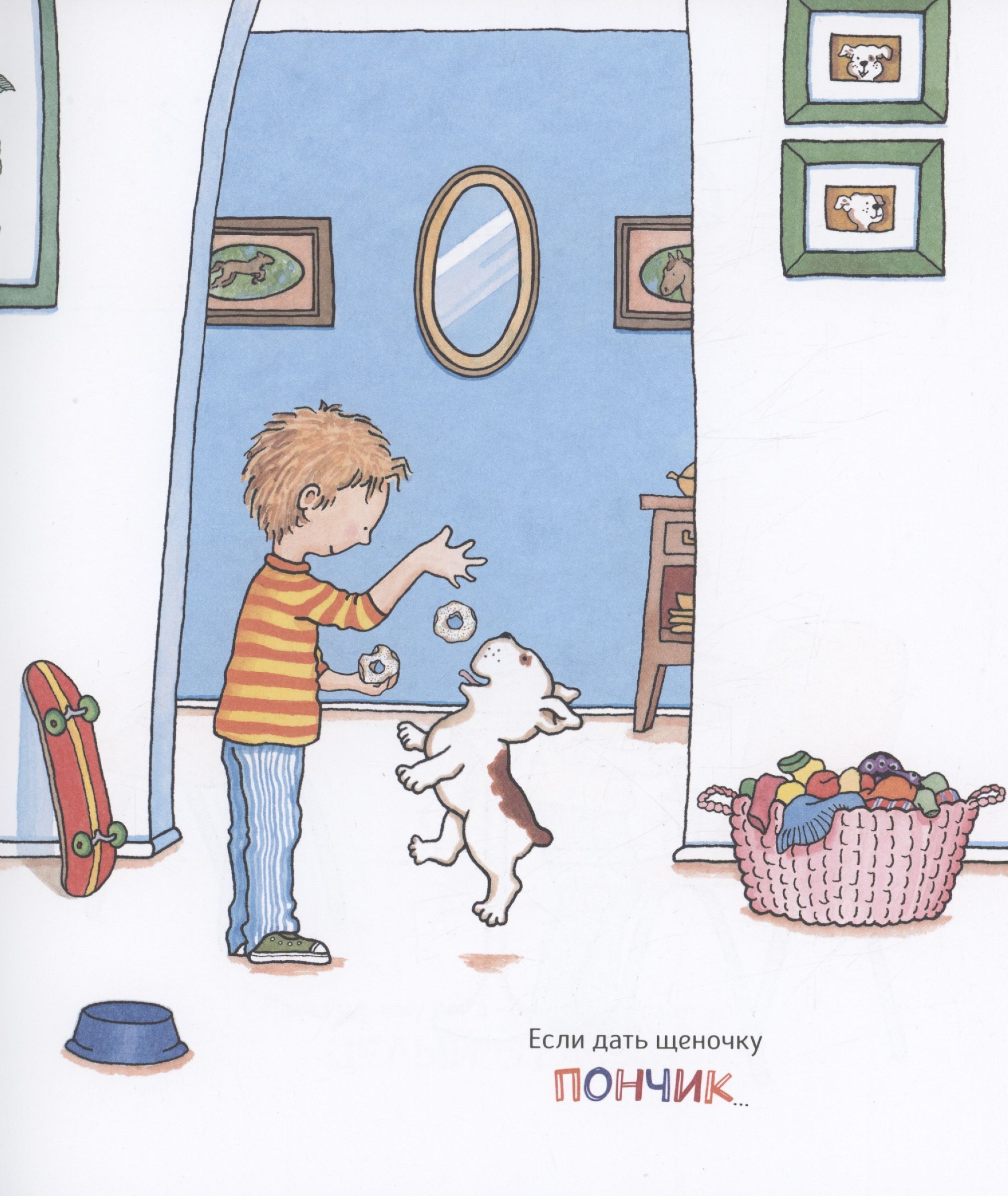 If you give a puppy a doughnut, he'll probably ask for apple juice. And he'll drink the whole glass! And when he runs out of juice, he'll want to make his own. He'll run to the orchard, climb up a tree and throw you a couple of apples. Then he'll think about his favorite baseball game and offer to play... And what (most likely) happens next, you'll find out in this fun and kind book!