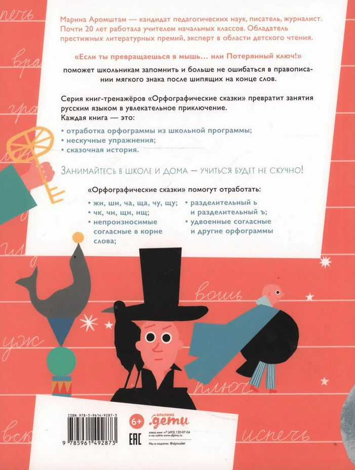 Candidate of Pedagogical Sciences, writer and journalist Marina Aromshtam offers to work out and memorize orthograms with the help of a fascinating story - a real quest, passing through which a child in a playful form will repeat the rules so many times that he simply cannot not remember them!