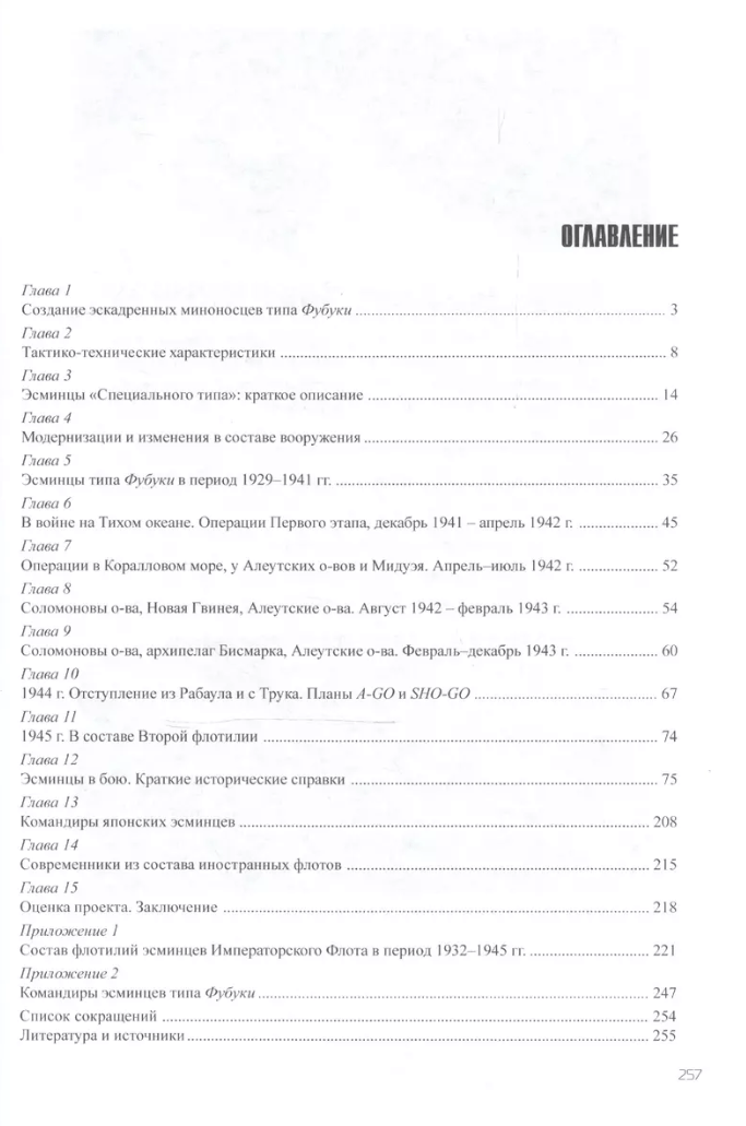 At the end of the book in Appendix 1 lists of commanders of the ships. In Appendix 2 - the composition of torpedo flotillas of the Imperial Navy in the period from 1927 to 1945, indicating the commanders of the flotillas, their flagships, the composition of the divisions, the dates of repairs, withdrawal from the combat force, the transfer of ships to other formations.