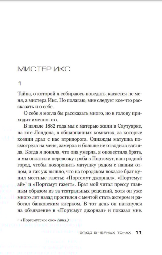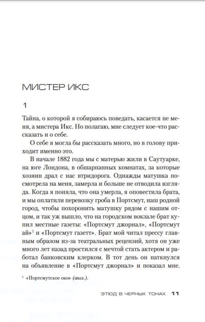In Somoza's novel, Etude in Black, it all begins in June 1882, when a nurse, Anne McCarey, not young, not pretty, unmarried, arrives in Portsmouth, where she has secured a place in the prestigious Clarendon House Clinic for the mentally ill. She is assigned to care for a mysterious gentleman. This strange patient calls himself Mr. X. He can't stand the light of day, but he is endowed with extraordinary insight, for him there is nothing secret in people's actions, and he can investigate crimes without getting up from his chair. This duo is joined by London doctor Conan Doyle, who has just opened a practice. Meanwhile, several murders occur in the neighborhood of the clinic under mysterious circumstances with strange periodicity. The police are at a dead end, and it seems the only one who can solve the case is Mr. X.