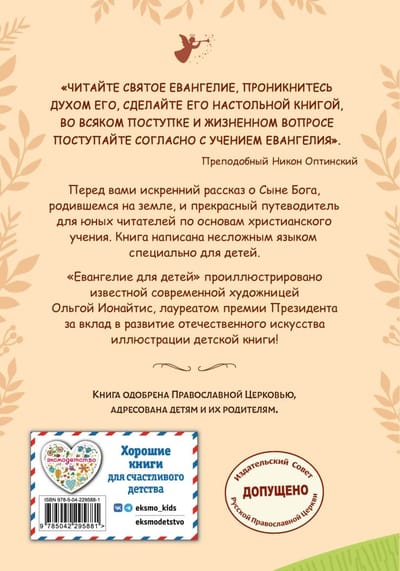The Gospel is a treasure trove of wisdom, moral lessons, and spiritual support for all people on earth. Children should be introduced to it from a very early age. It will teach them about God and Christian values, teach them to distinguish good from evil, and lay the foundation for a spiritual life.
