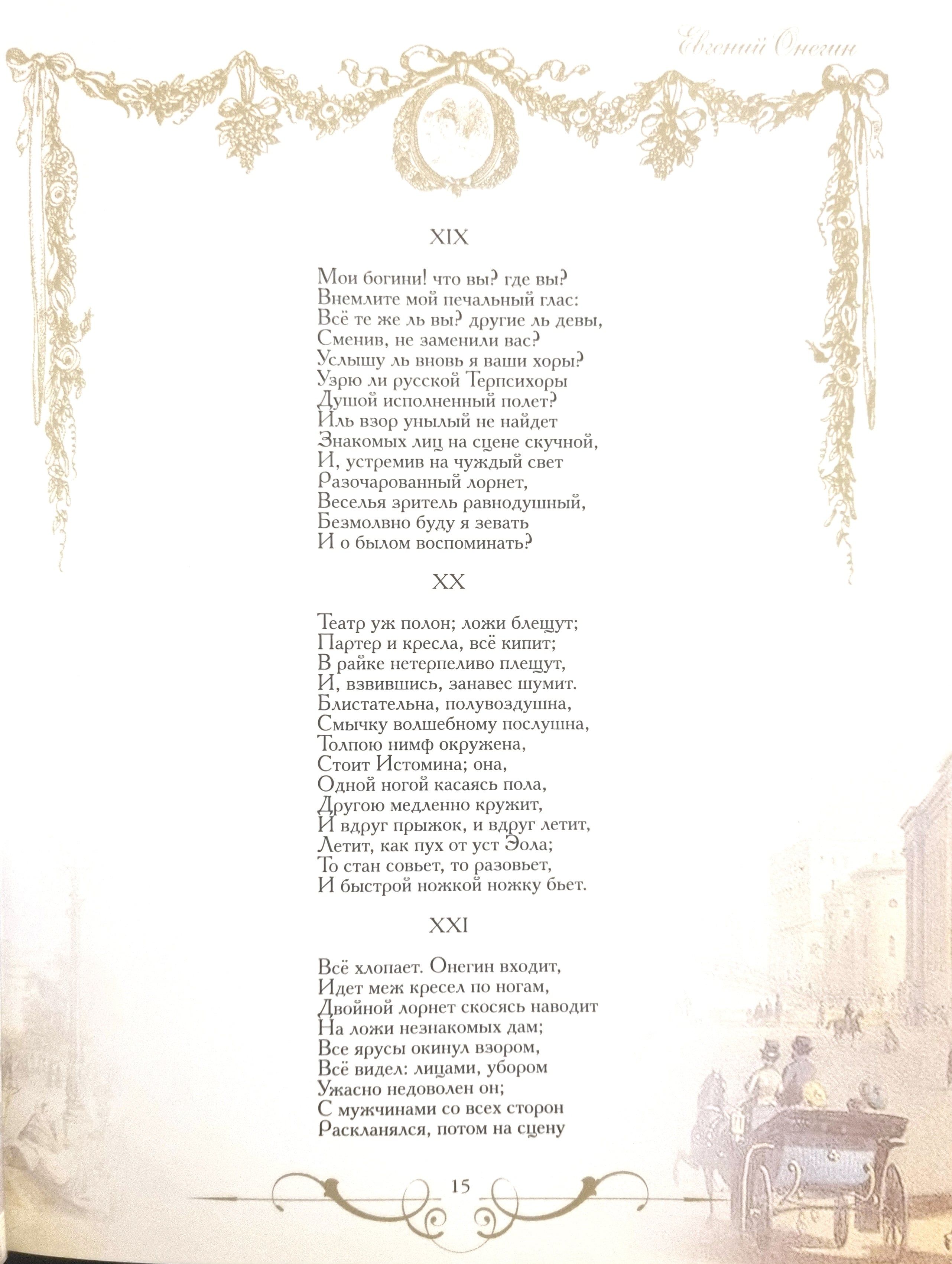 The novel in verse "Eugene Onegin" is the most famous and most significant work of A. S. Pushkin, the pinnacle of Russian poetry and the subject of numerous studies. Pushkin began writing the novel in May 1823 and finished it only in the autumn of 1831, when "Onegin's Letter to Tatyana" was written. In the autumn of 1823, he told his friends: "... Now I am writing not a novel, but a novel in verse - a devilish difference..." Entertaining, light, based on a love story conveyed in the manner of a confidential conversation between the author and the reader, and at the same time full of insoluble paradoxes and mysteries. The contradictions and multidimensionality that make up the very essence of Pushkin's novel attract new generations of readers, allowing them to discover new meanings in it.