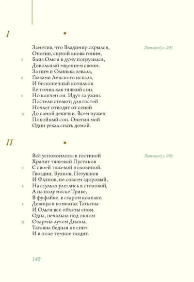 The uniqueness of the verse novel "Eugene Onegin" lies in the fact that Pushkin presented in poetic form an "encyclopedia of Russian life," replete with details and references gracefully woven into the narrative. Behind the light and beautiful Pushkin style, the reader discovers philosophical reflections, metatextual reflections, and ironic remarks. The story of the main characters and the images of Onegin and Tatyana seem so familiar and relatable that they leave no one indifferent. "Eugene Onegin" is not only an immersion into Russian culture, made more captivating by Yury Lotman's "Commentary," but also a school of humanity and empathy. The book reproduces autographs and drawings from A.S. Pushkin's workbooks, as well as illustrations by contemporary artist Victoria Yastrebova.
