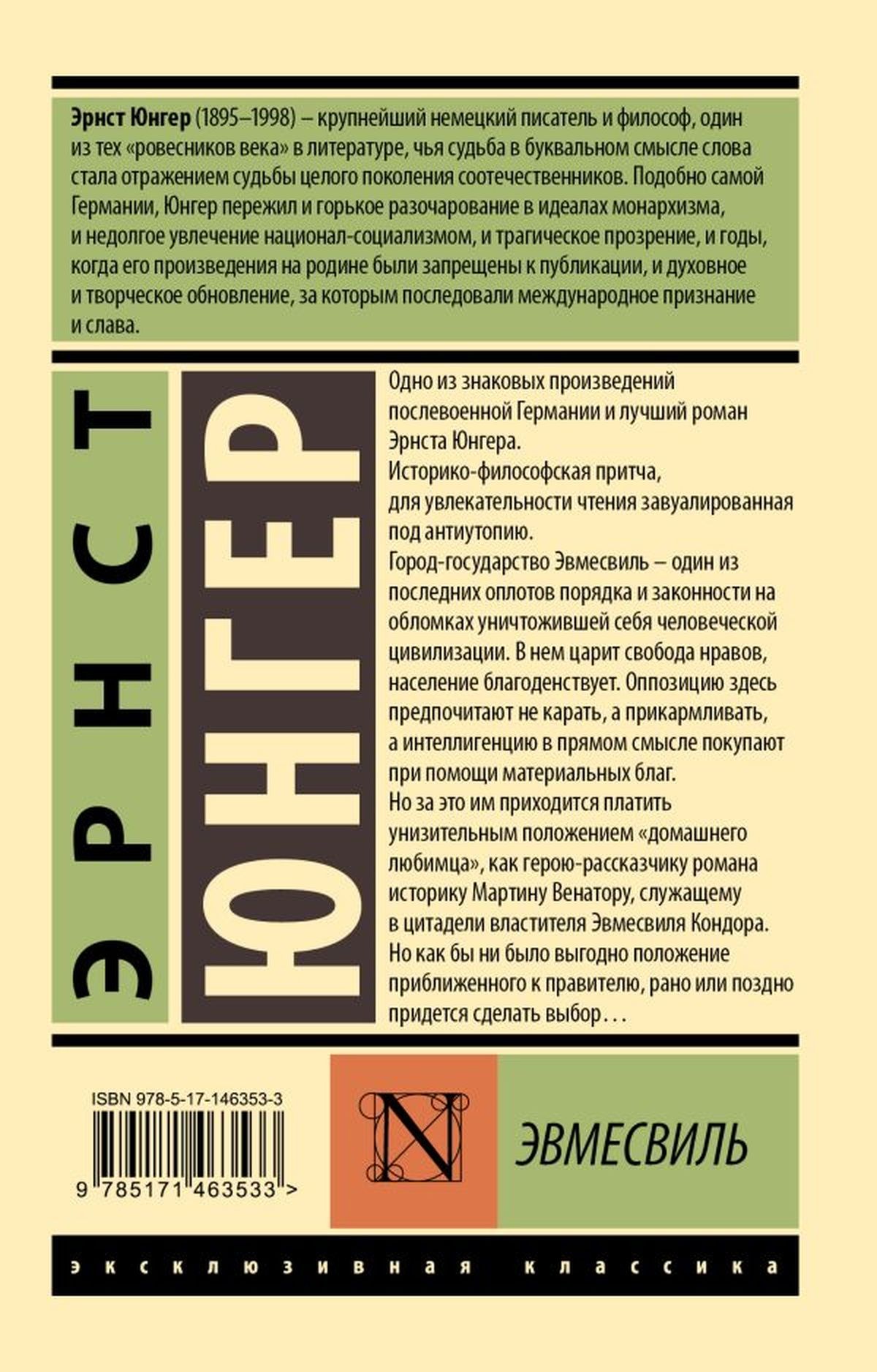 The city-state of Eumeswil is one of the last strongholds of order and law amid the ruins of a human civilization that has destroyed itself. Moral freedom reigns supreme, and the population prospers. Opposition is cherished rather than punished, and the intelligentsia is literally bought with material goods. For this, they must pay the humiliating price of being relegated to the role of "pet," like the novel's narrator, historian Martin Venator, who serves in the citadel of Condor, the ruler of Eumeswil. But no matter how advantageous the position of being close to the ruler, sooner or later a choice must be made...