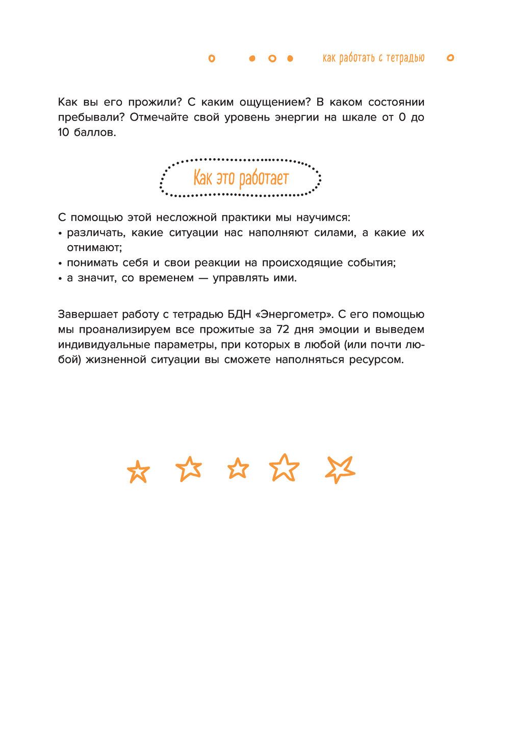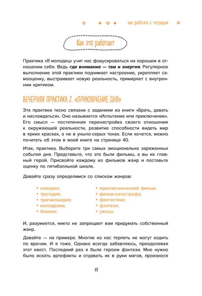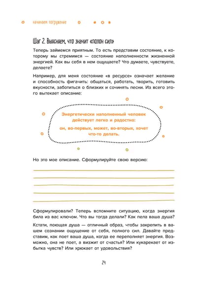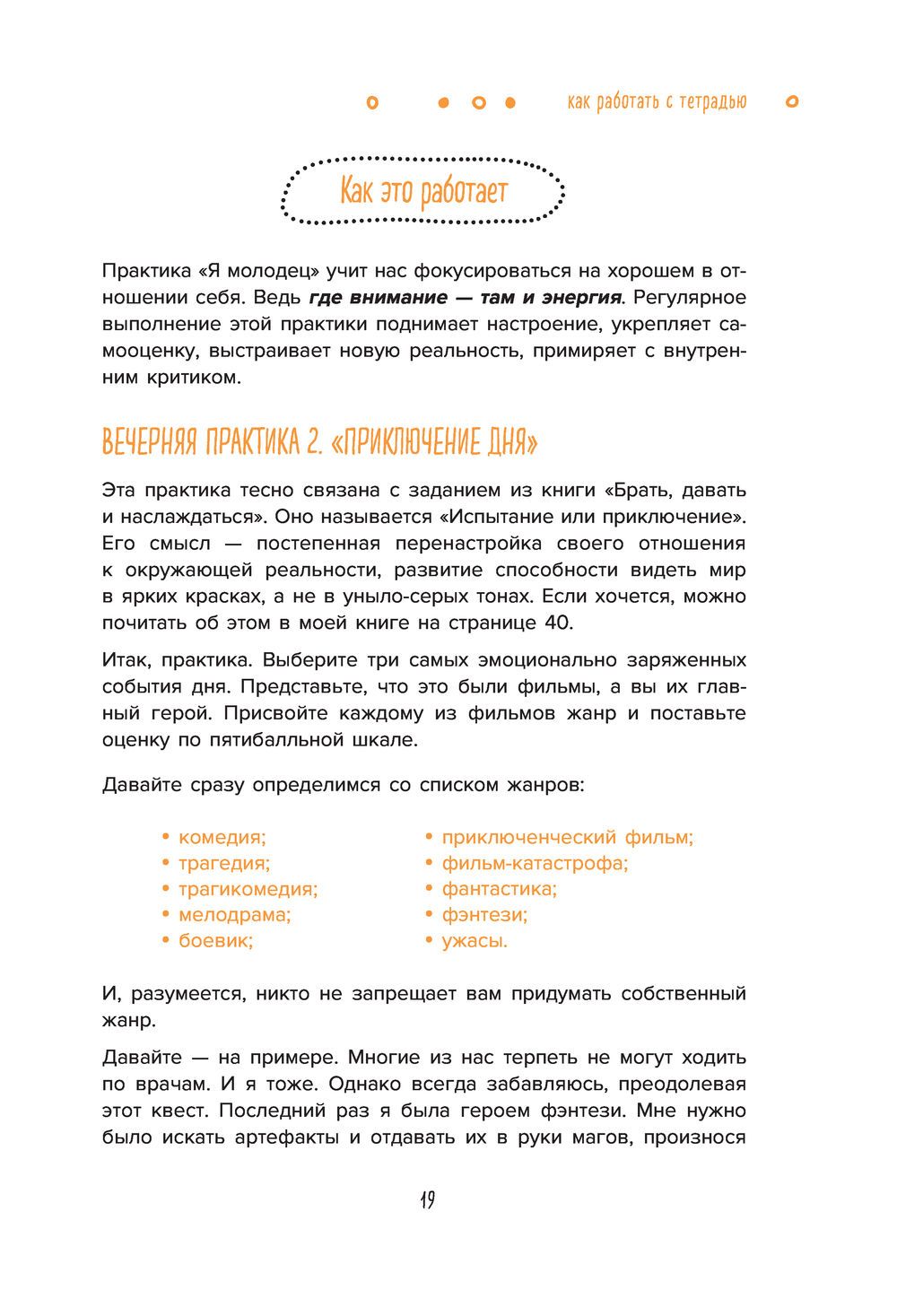 This workbook is a real accumulator for replenishing your inner resource. It contains a system of day and evening practices designed for 72 days. When you perform these practices, you will feel that you are literally overflowing with energy and desire to act! 7.5 thousand participants of Tatiana Muzhitskaya's online marathons have already been convinced of their effectiveness - join this energy whirlwind!