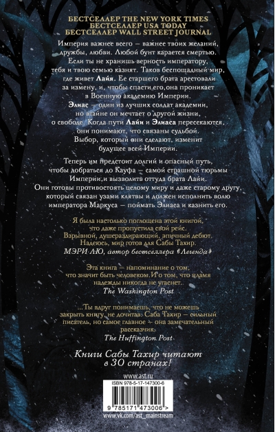 The Empire is more important than anything – more important than your desires, friendship, love. Any rebellion is punishable by death. If you are not loyal to the Emperor, you and your family will be executed. This is the merciless world where Laia lives. Her older brother was arrested for treason, and to save him, she infiltrates the Imperial Military Academy. Elias is one of the best soldiers at the Academy, but secretly he dreams of a different life, of freedom. When Laia and Elias' paths cross, they realize that they are bound by fate. The choice they make will change the future of the entire Empire. Now they have a long and dangerous journey to get to Kauf, the most terrible prison in the Empire, and free Laia's brother from there. They are ready to face the whole world and even an old friend who is bound by an oath and must fulfill the will of Emperor Marcus – catch Elias and execute him.