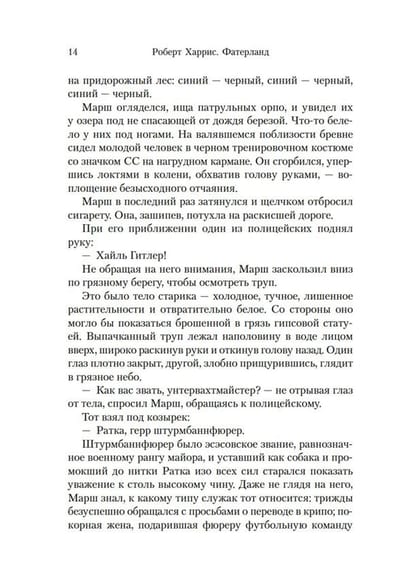 Berlin, 1964. Relations between the Great German Reich, stretching from the Rhine to the Urals, and its rival, the nuclear-armed United States, are strained to the extreme. But Faterland is looking forward to a peacekeeping visit - American President Joseph Kennedy has promised to attend to celebrate a double anniversary, the twentieth anniversary of the Third Reich's victory and Adolf Hitler's seventy-fifth. An old man's corpse is discovered in a lake near a prestigious Berlin suburb. As soon as Xavier Marsh, an SS criminal police investigator, manages to find out that the dead man is a retired party functionary, the Gestapo intervenes, ordering the investigation to stop immediately. The truth is too dangerous, it can overthrow governments and change the course of world history. But Marsh at his own risk continues to unravel the tangle of...