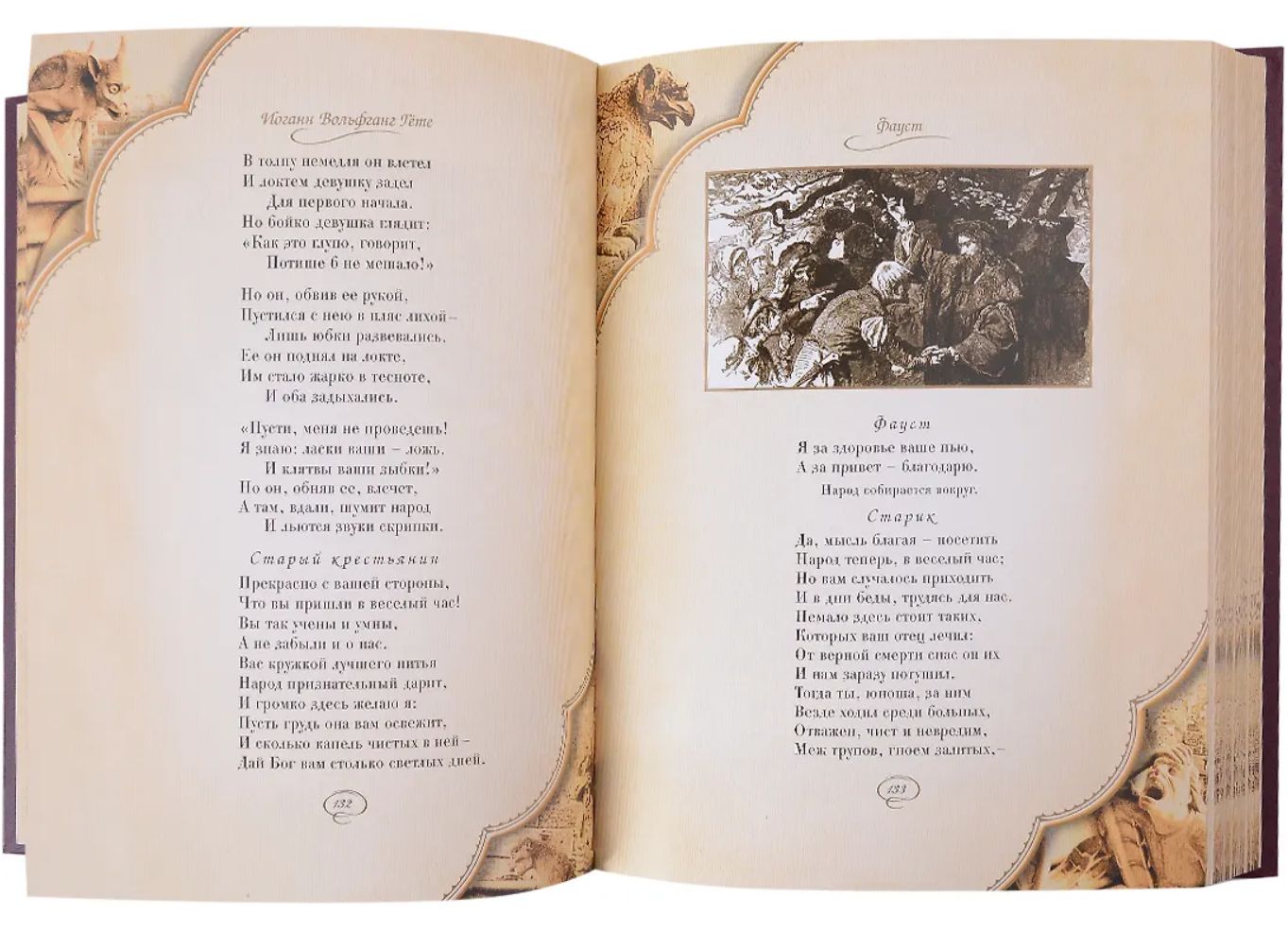 This edition is the finest in the history of book printing. N.A. Kholodkovsky's brilliant translation, which conveys the full depth of this philosophical work, and over 300 magnificent illustrations by V. Glushenko, V. Kuzubov, F. Simm, A. Litzen-Mayer, and L. Falero, most of which were created specifically for this edition and published in Russia for the first time, combined with a three-sided gilt edge and a unique binding embossed with nine different foil colors, create a true masterpiece of book publishing.