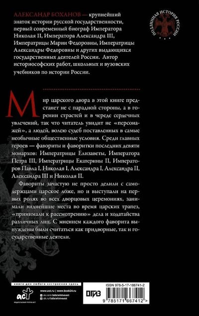 The world of the royal court will be presented not from the ceremonial side, but in the burning passions, in a series of heartfelt infatuations, so that the reader will see not "characters", but people who, by the will of fate, were placed in the most unusual social situations. Among the main characters are the favorites and favorites of the last nine monarchs: Empress Elizabeth, Emperor Peter III, Empress Catherine II, Emperors Paul I, Nicholas I, Alexander I, Alexander II, Alexander III and Nicholas II.