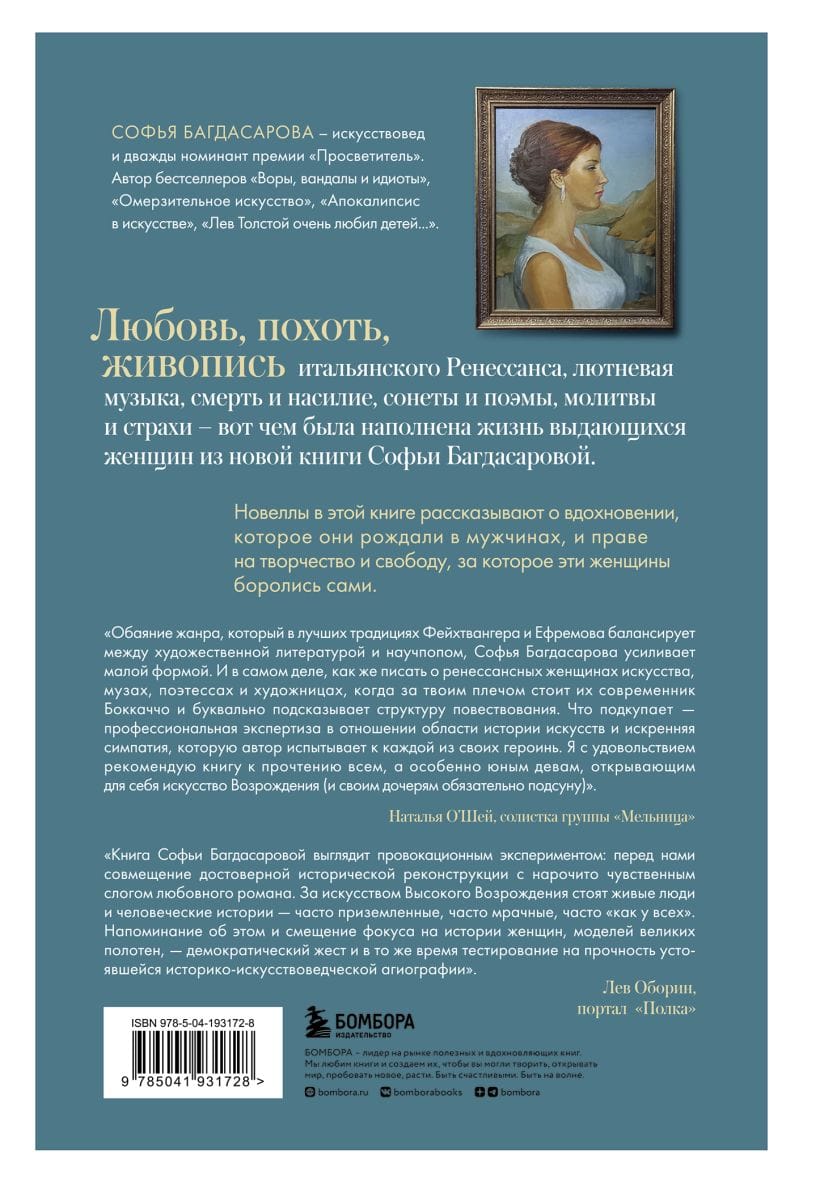 Everyone has heard of the beautiful Lucrezia Borgia, lecherous and treacherous. But in Renaissance Italy there were other, no less bright, women: poets, writers, singers, salon mistresses, nuns, courtesans and favorites of monarchs, as well as, of course, artists and sitters. Weaving together the cultural history of the Italian Renaissance, one cannot do without these women. However, their names have been lost to the ages and their faces forgotten. The novellas in this book reconstruct for us the story of their lives, recounting the inspiration they engendered in men and the right to creativity and freedom that these women fought for themselves.
