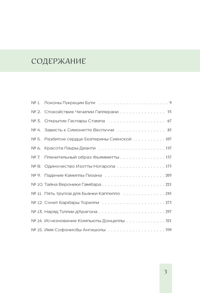 The book consists of 15 stories that reveal the secrets of famous paintings and forgotten poems. Facts, names and dates in it - authentic, but the emotions in most cases reconstructed by the author. After all, chronicles of that era, listing facts, usually silent about feelings, love and tears. And also, talking about the Renaissance, of course, you can not do without works of art, so this book has a lot of reproductions of paintings and statues, telling about the heroines. They are accompanied by art history annotations - thanks to them the reader will penetrate deeper into the history of Renaissance art, especially into the evolution of the portrait genre.