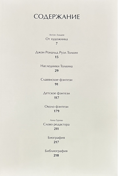 The art book includes more than five hundred illustrations made in various techniques. These are pencil and pen drawings, watercolors, works painted with tempera and acrylic, painted in oil and created with the help of a computer. In the comments on the pages of the album, the artist talks about his work, shares memories of publishing life and the secrets of the artist's "kitchen". Anna Gurova - a writer, editor and translator, the author of more than thirty books in the genres of science fiction and fantasy - told in this publication about how the fantasy genre appeared, as well as about the development of this direction in Russian-language literature.