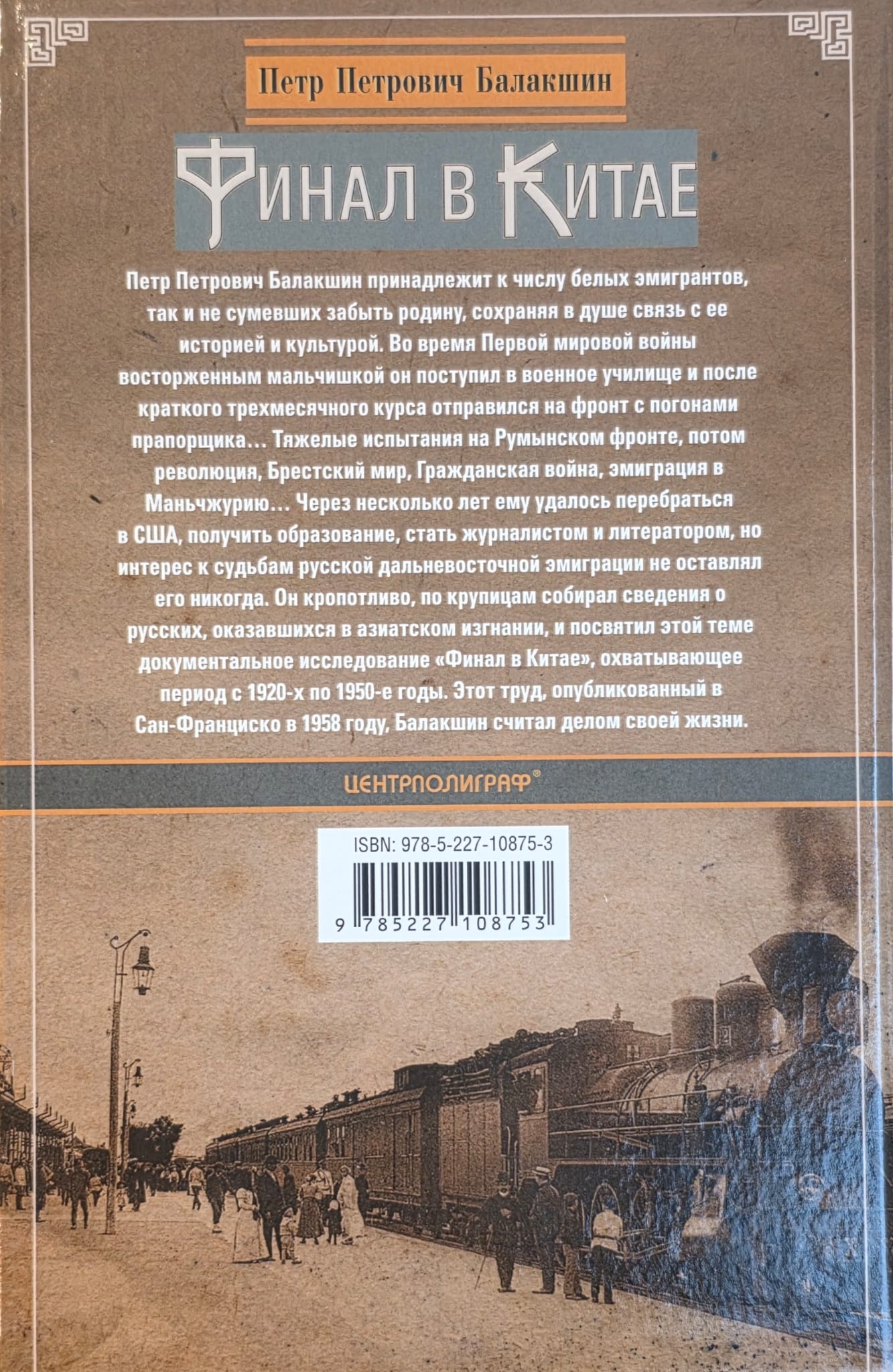 Pyotr Petrovich Balakshin is one of those White émigrés who never forgot their homeland, maintaining a strong connection to its history and culture. During World War I, as an enthusiastic boy, he enrolled in a military academy and, after a short three-month course, went to the front with the rank of ensign. He endured difficult trials on the Romanian front, then the Revolution, the Treaty of Brest-Litovsk, the Civil War, and emigration to Manchuria. A few years later, he managed to move to the United States, receive an education, and become a journalist and writer, but his interest in the fates of Russian emigrants in the Far East never wavered. He painstakingly collected information about Russians in Asian exile, bit by bit, and dedicated his documentary study, "Final in China," to this topic, covering the period from the 1920s to the 1950s. Balakshin considered this work, published in San Francisco in 1958, to be his life's work.