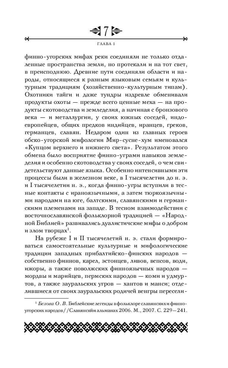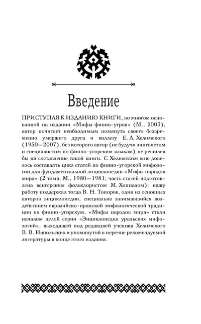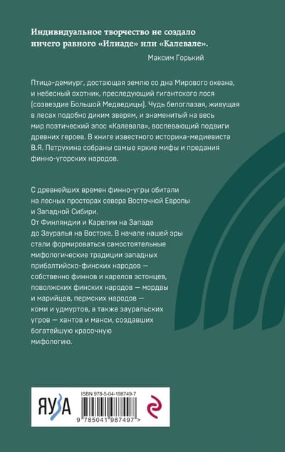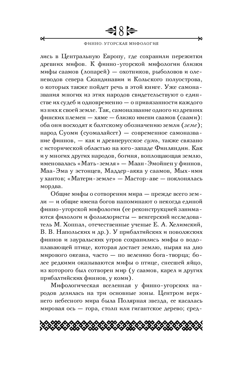 Since ancient times, the Finno-Ugric peoples have inhabited the forested expanses of the north of Eastern Europe and Western Siberia. From Finland and Karelia in the West to the Trans-Urals in the East. At the beginning of our era independent mythological traditions of the Western Baltic-Finnish peoples - Finns and Karelians proper, Estonians, the Volga Finnic peoples - Mordva and Mari, the Perm peoples - Komi and Udmurts, as well as the Trans-Ural Ugric peoples - Khanty and Mansi, who created the richest mythology, began to form. For thousands of years Finno-Ugrians were connected with their neighbors - Iranians (in ancient times), Slavs and Turks, and these connections, reflected in the book, influenced their mythology. The colorful myths of the Sami (Loparians) - hunters, fishermen and reindeer herders of the north of Scandinavia and the Kola Peninsula - transmitted in this edition are close to Finno-Ugric mythology.