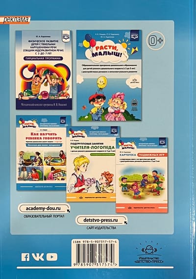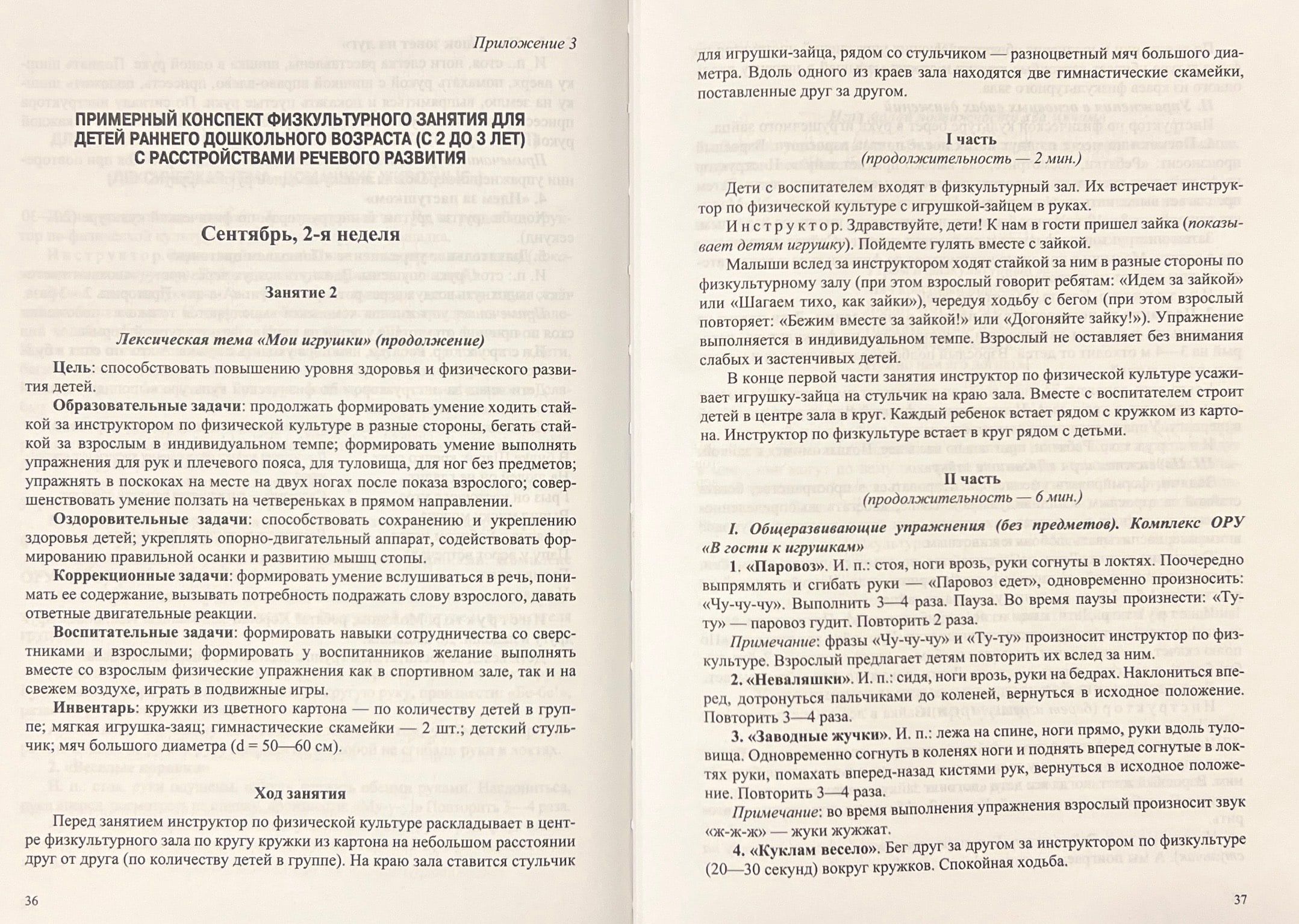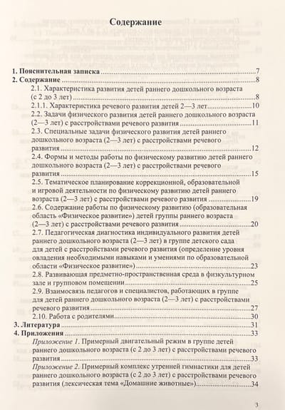 The book presents methodological recommendations on the physical development of 2-3 year old children with speech development disorders, the purpose of which is to provide methodological assistance to practicing teachers in improving the health of young children, their physical development, expanding the functional capabilities of the body, the formation of motor skills, skills and physical qualities, to promote the development of speech.