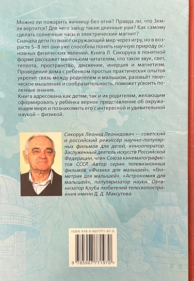 L. Sikoruk's book will tell young readers in an understandable form what sound, light, heat, space, movement, inertia and magnetism are. Conducting simple practical experiments with a child at home will strengthen the bond between parent and child, develop creative thinking and intelligence, and help to assimilate useful knowledge. The book is addressed to both children and their parents who want to form a correct understanding of the world around them and introduce them to an interesting and amazing science - physics.