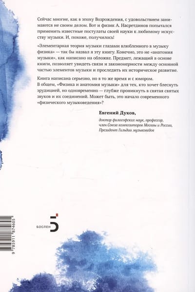 "Elementary music theory through the eyes of a music-loving physicist"—that's how one might describe this publication. The book's core subject matter allows one to see the connections and patterns between the main elements of music and trace their historical development. The book is written seriously, yet with a touch of humor. Overall, "The Physics and Anatomy of Music" is for those who want to show off their erudition while simultaneously delving deeper into the inner sanctum of sounds and their connections.