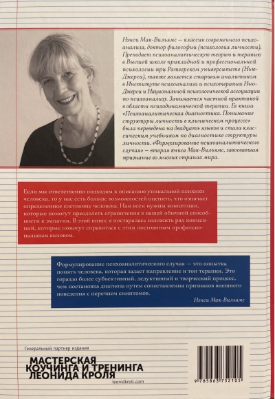 How do you understand a new patient? What treatment strategy should you choose, given their unique characteristics? Although an experienced psychotherapist relies on generally accepted diagnostic principles, their own practice is more determined by subjective and intuitive processes. Nancy McWilliams, author of the classic work "Psychoanalytic Diagnosis," demonstrates that only an understanding of a patient's unique personal characteristics informs informed decisions about their therapeutic strategy and tactics. Using examples from psychotherapy cases, clinical studies, and various theoretical concepts, this book explains in detail how an assessment of a patient's temperament, developmental characteristics, defense mechanisms, affects, identifications, relationship patterns, and pathogenic beliefs contributes to understanding a patient. This book is an indispensable tool for practicing psychologists, psychotherapists, and psychiatrists, regardless of their theoretical orientation, as well as for students, teachers, and anyone interested in depth psychology.