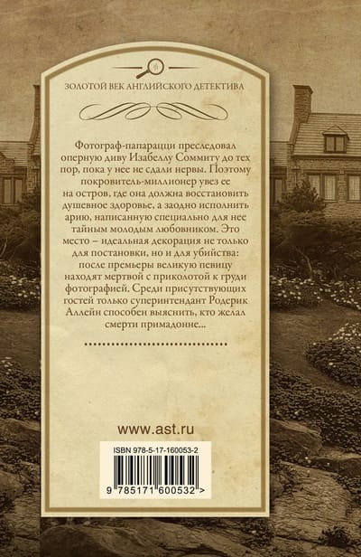 A paparazzi photographer chased opera diva Isabella Sommita until she lost her nerve. So her millionaire patron takes her to an island where she must regain her mental health and at the same time perform an aria written especially for her by her secret young lover. This place is the perfect setting not only for a production, but also for a murder: after the premiere, the great singer is found dead with a photograph pinned to her chest. Among the guests present, only Superintendent Roderick Alleyne is able to find out who wished the diva dead....