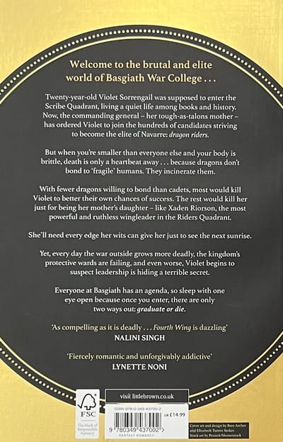 Welcome to the brutal and elite world of Basgiath War College, where everyone has an agenda, and every night could be your last...