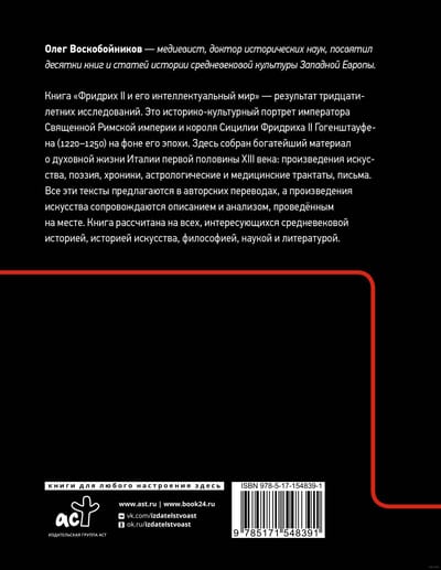 Frederick II and His Intellectual World is the result of thirty years of research. This is a historical and cultural portrait of the Holy Roman Emperor and King of Sicily Frederick II Hohenstaufen (1220–1250) against the background of his era. It contains the richest material about the spiritual life of Italy in the first half of the XIII century: works of art, poetry, chronicles, astrological and medical treatises, letters. All these texts are offered in author’s translations, and the works of art are accompanied by description and analysis carried out on the spot. The book is designed for everyone interested in medieval history, art history, philosophy, science and literature.