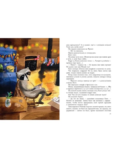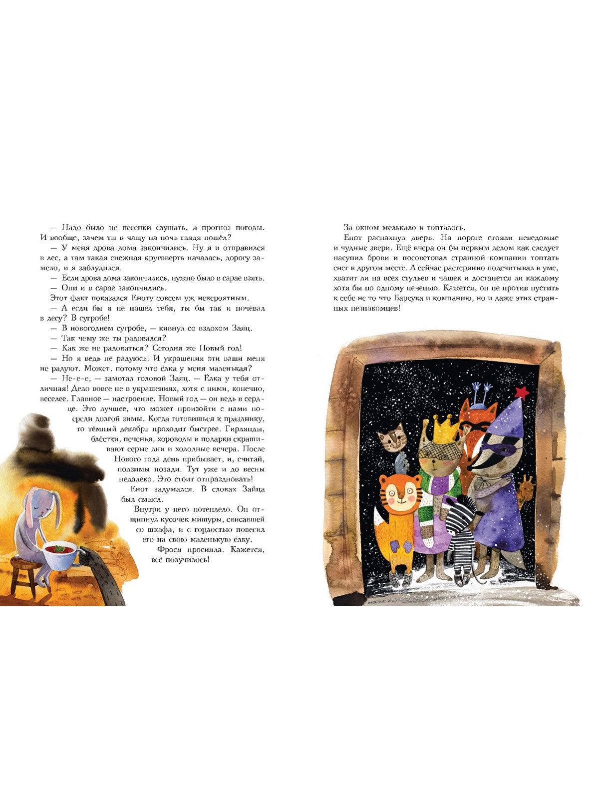 When the small forest town was blanketed with the first snow - everything changed. It was time to get ready for the New Year! Take out from the mezzanine Christmas decorations, listen to festive songs, prepare gifts and, most importantly, give each other a joyful mood! But what to do if your neighbor is a perpetually frowning Coon, who sees no use in the holiday? How to give a good mood to someone who does not want to accept gifts. It seems that only the little Christmas tree Frosa can soften the Coon's heart. The most New Year's fairy tale by Olga Fadeeva will reveal the secret of this magic!