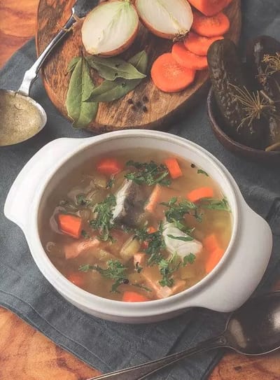 The soup section is also rich—seasoned soups, clear soups, cream soups… fish, seafood, meat, poultry, and soups without animal products.