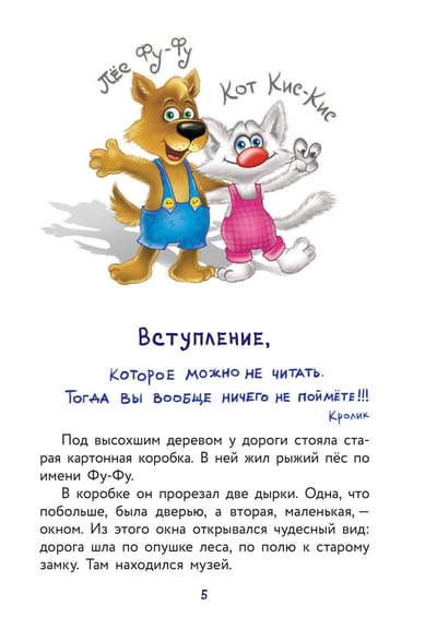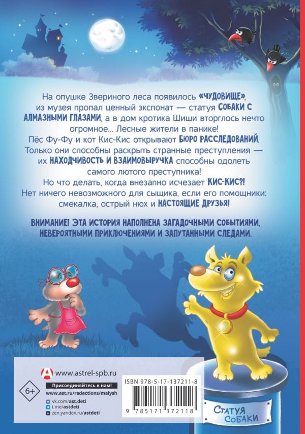 A "monster" has appeared on the edge of the Animal Forest, a valuable exhibit - a statue of Dog with diamond eyes - has disappeared from the museum, and something huge has invaded the house of Shishi the rabbit... The forest dwellers are in a panic! Foo-Foo the dog and Kitty-Kitty the cat open the Bureau of Investigation. Only they are able to solve strange crimes - their ingenuity and mutual help can defeat the most fierce criminal! But what do they do when Puss-Kiss suddenly disappears?! Nothing is impossible for a detective if his helpers are wit, keen sense of smell, and true friends! This story is filled with mysterious events, incredible adventures, and confusing trails.