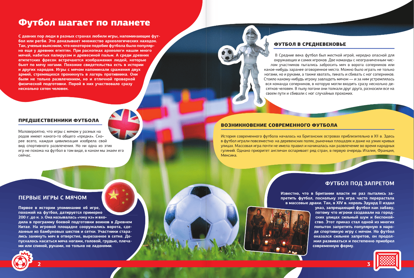 The publication tells about the most popular sport in the world - football: the history of its origin, the formation of rules, legendary championships, the best teams and outstanding players. The book will teach you how to choose the right equipment for participation in a football match, introduce tactical techniques and game moments, basic rules and penalties for their violation, as well as referee signs. The diverse information presented on these pages, visual tactical schemes, photographs and statements of world football stars will interest absolutely everyone, but especially beginner football players.