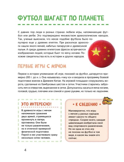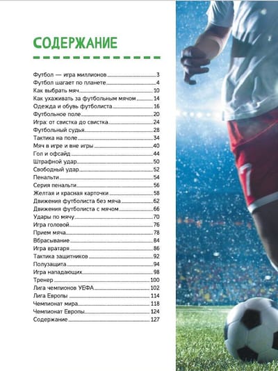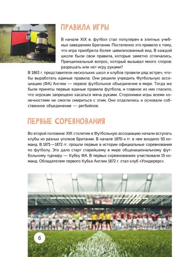 This book will tell you about what real professional football is, its history and development in our days. After reading it, you will learn about all the intricacies of this "game of millions", get acquainted with many nuances of the current rules, which you may not have even heard of before. In addition, it contains a number of practical tips that will help you approach the battle on the field fully armed, because not everyone knows how to choose the right ball and take care of it, choose the right clothes and shoes for the game, kick the ball and head it, perform tricky feints, act in attack, midfield and defense and much more. Well, the tactics and strategy of actions on the field, without which football turns into just kicking a ball, are, of course, considered here in all details! We are sure that after reading this book, you will not only learn a lot about this wonderful game, but also significantly improve your playing skills. And if football is your passion and you have decided to devote all your free time to it, it will become an indispensable assistant, a competent consultant and a tabletop trainer for you.