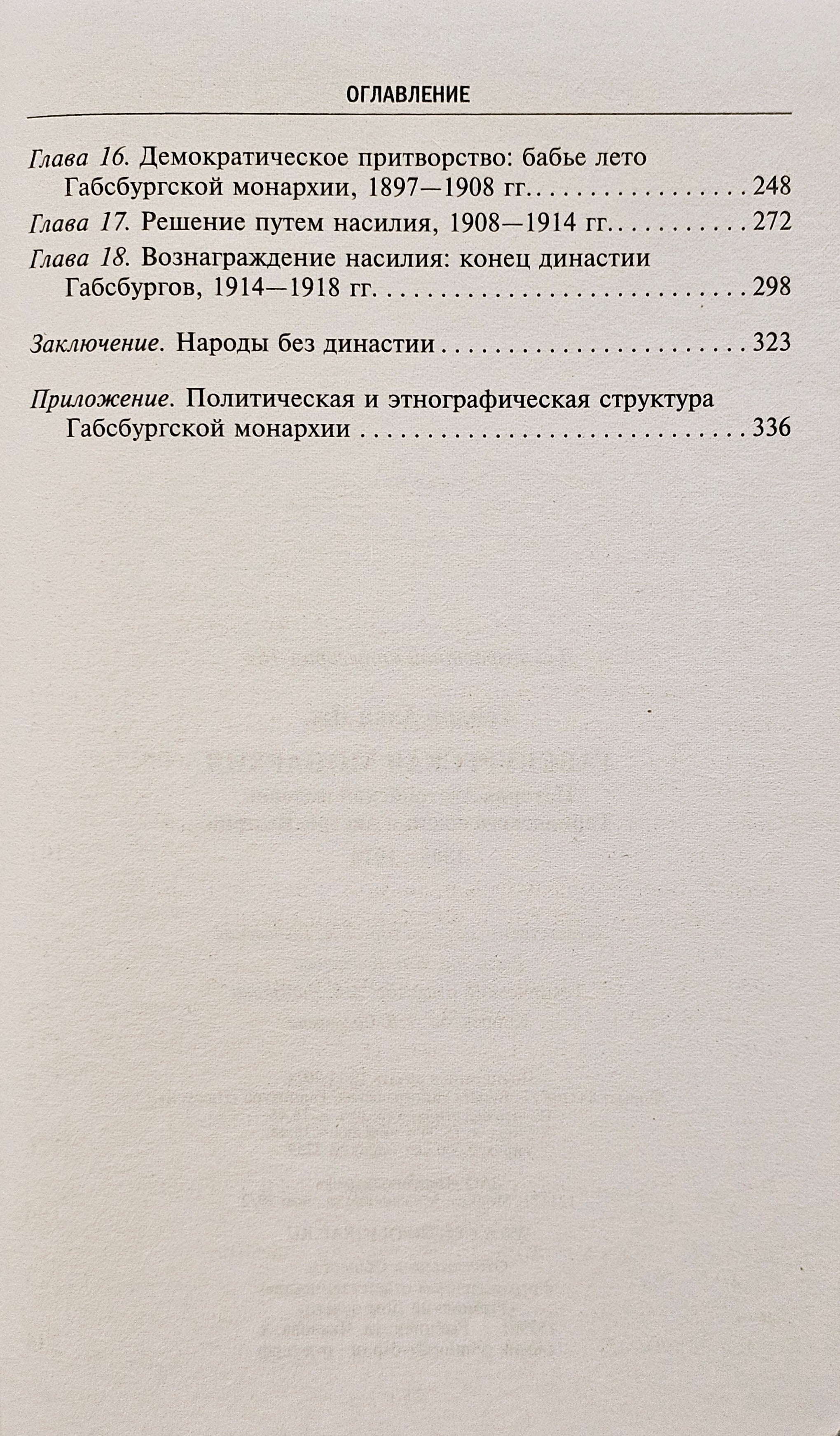 The book by the British historian Alan J. Taylor is a comprehensive study of the last century of the Habsburg monarchy from the Napoleonic Wars to the First World War, allowing us to better understand the historical processes that took place not only in the "lands of the Danube Valley" but in Europe as a whole. The author examines the unique nature of the state, which was a collection of the hereditary possessions of the House of Habsburg, inhabited by peoples of different languages and religions, describes its political structure and ethnographic structure. Focusing on major historical figures and events, Taylor traces the process of unification of the empire after the Congress of Vienna, the radical transformations of 1848, the imperial crisis caused by defeat in the Austro-Prussian War, as well as the rise of the Hungarian national movement and the inevitable collapse of the empire in 1918.