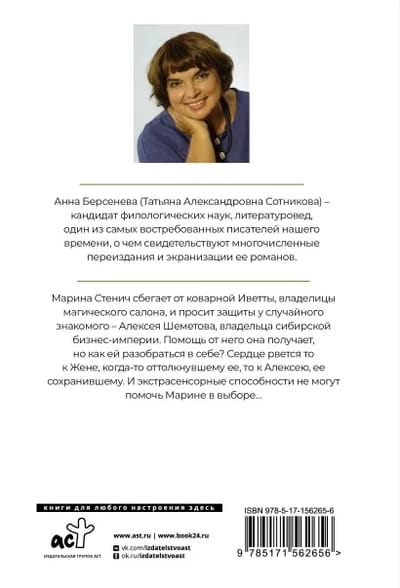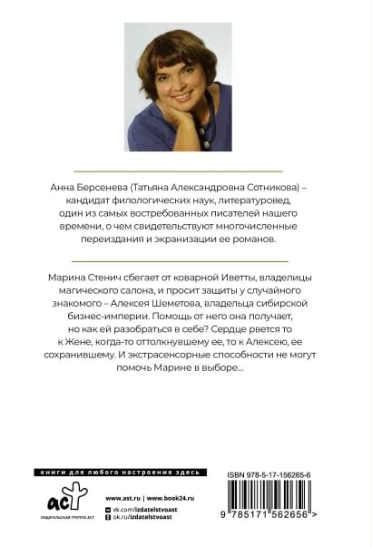 Marina Stenich escapes from the treacherous Yvette, the owner of a magical salon, and asks for protection from a casual acquaintance - Alexei Shemetov, the owner of a Siberian business empire. She gets help from him, but how can she sort herself out? Her heart is torn then to Zhenya, who once pushed her away, then to Alexei, who saved her. And psychic abilities can not help Marina in the choice ...