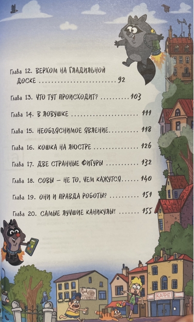 A new book in the children's adventure fantasy series "Kefir, Gavroche, and Ricochet" by renowned contemporary author Evgeny Gagloev. Illustrations in the style of the popular animated series "Gravity Falls," intricate detective investigations, humor, and raccoon aliens starring in the title role!