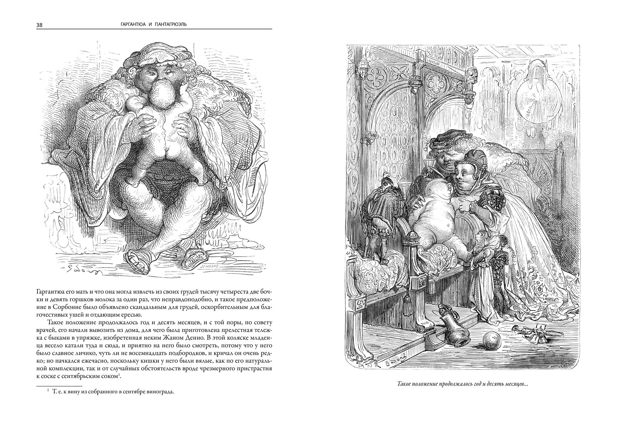 The famous satirical novel "Gargantua and Pantagruel", written by the great 16th century humanist François Rabelais and one of the best literary monuments of the Renaissance, is published in the first Russian translation made in 1929 by Vladimir Alexeevich Pyast (real name Pestovsky). In this edition, this translation is supplemented with all previously omitted fragments. The book is decorated with booklets, vignettes, and 704 illustrations by Gustave Doré, a prominent French artist and engraver of the 19th century.
