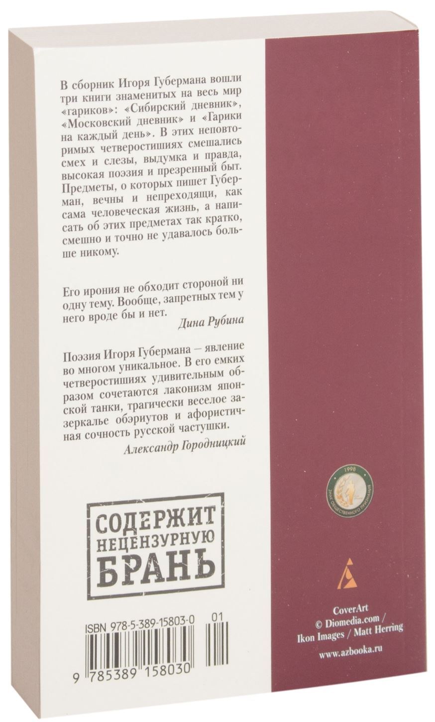 Igor Huberman’s main book “Gariki for Every Day” has long become a classic. Since the first edition in 1992, it has been continuously published and republished not only in Russia, but also abroad, and will be republished as long as there is at least one reader in the world. Because the subjects of which Huberman writes are as eternal and imperishable as human life itself, and no one else has been able to write about these subjects so briefly, ridiculously and accurately.