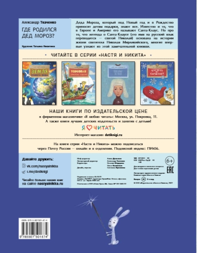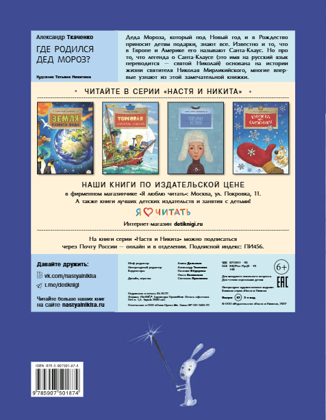 Everyone knows Father Frost, who brings gifts to children at New Year's and Christmas. It's also known that in Europe and America, he's called Santa Claus. But many will first learn from this captivating book that the legend of Santa Claus (his name translates into Russian as Saint Nicholas) is based on the life of Saint Nicholas of Myra, who has always been known in Rus' as Nicholas the Wonderworker. Vivid episodes from the life of the saint, who is always ready to help those in need, will reveal to children and adults why Saint Nicholas is so revered by sailors, drivers, pilots, and even astronauts, and will help readers better understand the essence of Christianity and Christmas traditions.