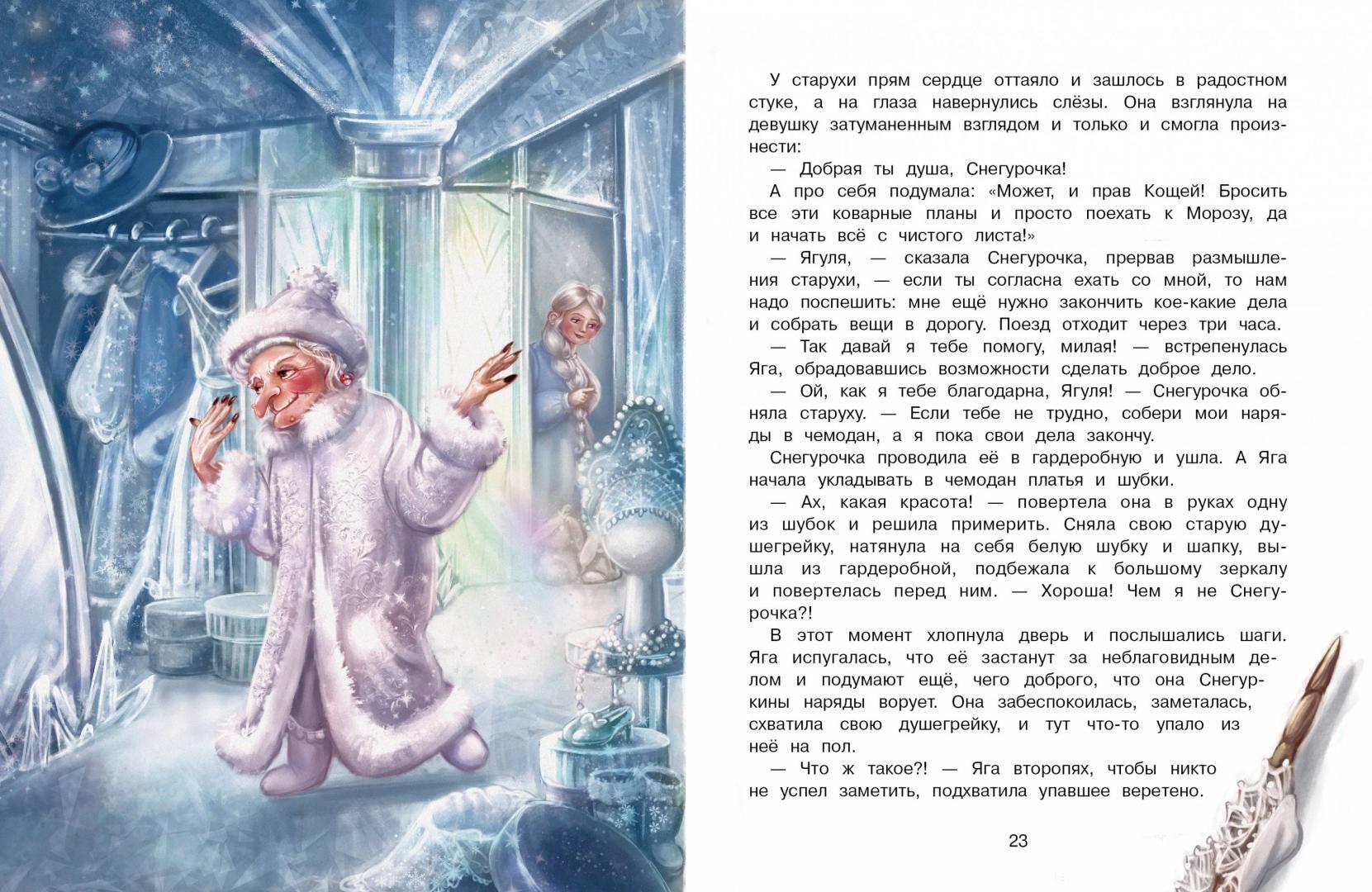Baba Yaga dreams of returning to Santa Claus' cottage. After all, New Year's Eve is coming soon, and it's the merriest time there! But she's ashamed. After what she arranged at the last holiday, no one will probably want to see her... And then Yaga decides to return as a savior. She devises a plan to kidnap the Snow Maiden and begins to execute it. And now the guests are already gathering in the Votchina, the holiday is approaching. Snegurochka should have long ago arrived from Kostroma on a magical train, but she is still not there. And then Father Frost receives an anonymous letter from the kidnappers. What to do? Where are you, Snegurochka...? For children of preschool and primary school age.
