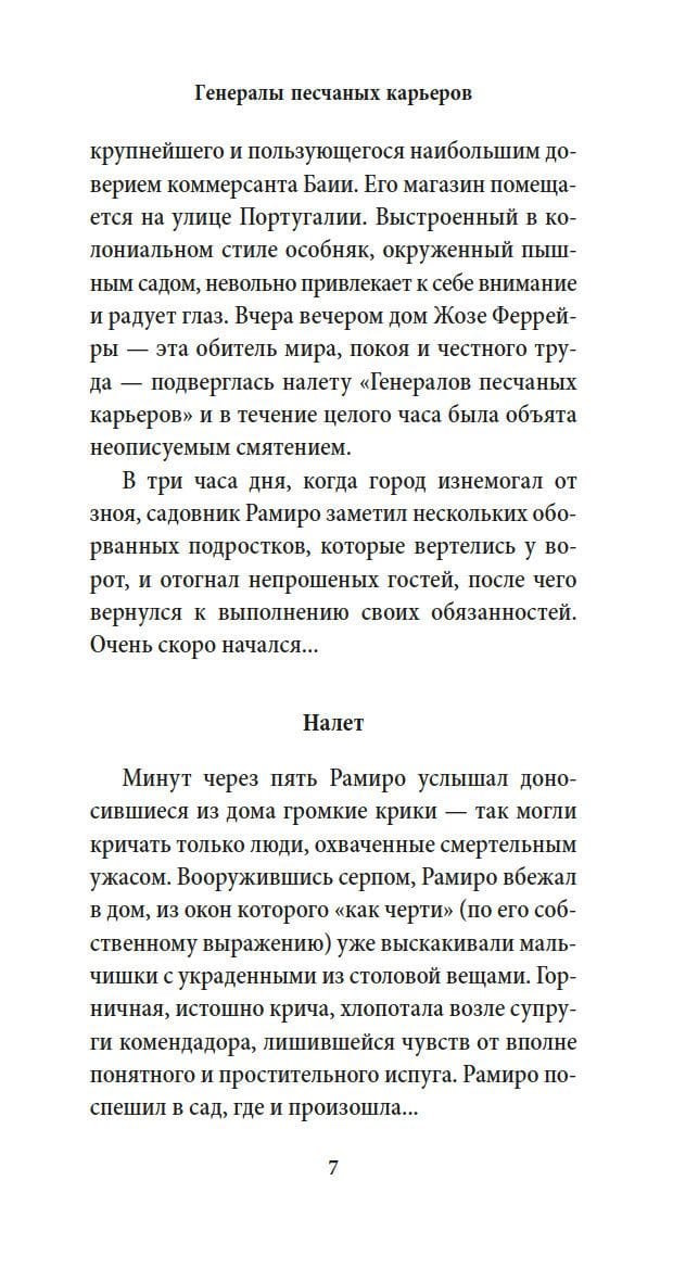 Jorge Amado - the unsurpassed singer of sunny Brazil, once a scandalous author, and now a recognized classic, whose books have been translated into fifty languages, published in dozens of countries and became the basis for many films and TV series. He was born in Bahia, a Brazilian state on the Atlantic coast, and there is the action of the most famous of his novels - including the last novel of the "Bahian cycle" "Generals of the sand pits. In Brazil, "Generals", for which the writer traveled to both Americas, is one of his most beloved books, in the rest of the world - one of the most famous (in 1971, Hall Bartlett screened it, and the film became a cult). The gang of "sandpit generals" - street kids sleeping on the sandy beaches of Bahia - commits daring robberies, hiding from the police, suffering and fun, crying and laughing, praying, dreaming and sacredly honoring the unwritten laws of friendship. In Jorge Amado's Brazil, every conceivable color, every way of life and every possible fate are mixed; there is music around the clock, poverty is constantly at war with wealth, piety coexists under the same roof with the worst vices, tears are interspersed with laughter, and brutal reality easily neighbors with everyday magic.