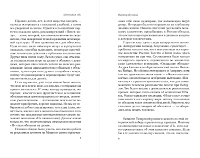 The events in the novel harken back to the dawn of Russian business. A young man with the pretentious name of Vavilen Tatarsky tries his hand at advertising and marketing, but in addition to the fashionable profession, he experiences a whole host of chthonic adventures that change him forever.