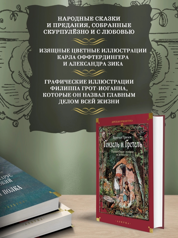 The expressive graphics of German and English artists allow one to immerse oneself in an atmosphere of adventure and the inevitable triumph of good over evil. Artist Philipp Groth-Johann called his illustrations for the deluxe edition of fairy tales his life's work. The elegant color illustrations by Karl Offterdinger and Alexander Zick capture the spirit of the times and the fairy tales themselves, enchanting and at times harsh.