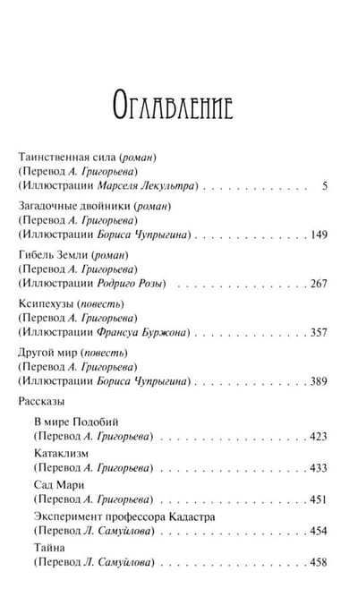 The first volume of the collection of works by Joseph-Henri Roni Sr. (1856-1940; real name - Henri-Joseph-Honore Bex), a well-known classic of Belgian-French fiction, included science fiction novels and novels of the author: “Mysterious Force”, “Mysterious Doubles”, “The Death of the Earth”, “Xipehuz”, “Another World” and five small stories.
