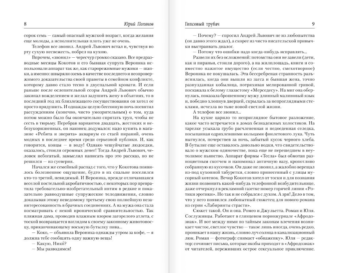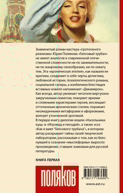 The famous novel by the master of "grotesque realism" Yuri Polyakov "Gypsum Trumpeter" has no analogues in modern Russian literature neither in terms of entertainment, nor in genre uniqueness, nor in the coverage of topics. This "ironic epic," as critics have called it, combines the features of the detective, love story, psychological novel, social satire, and the abundance of brilliant pasted novellas resembles the "Decameron". As always, the author captivates the reader masterfully twisted plot, conquers bright and complex characters, delighted by the refined ironic style, strikes unexpected metaphors and aphorisms, thrills refined eroticism.