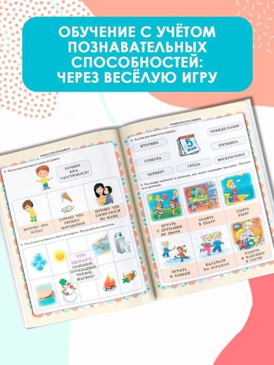 This book is the best helper for parents who want to help their child discover their talents and abilities. The tasks in the book are selected taking into account the age characteristics of children from five years old and are ideal for home learning. The child will broaden his horizons and enrich his vocabulary, familiarize himself with the basics of Russian grammar, learn to construct sentences correctly and compose stories from pictures, learn letters and master the first skills of reading, develop thinking, attention and memory. For preschool age.