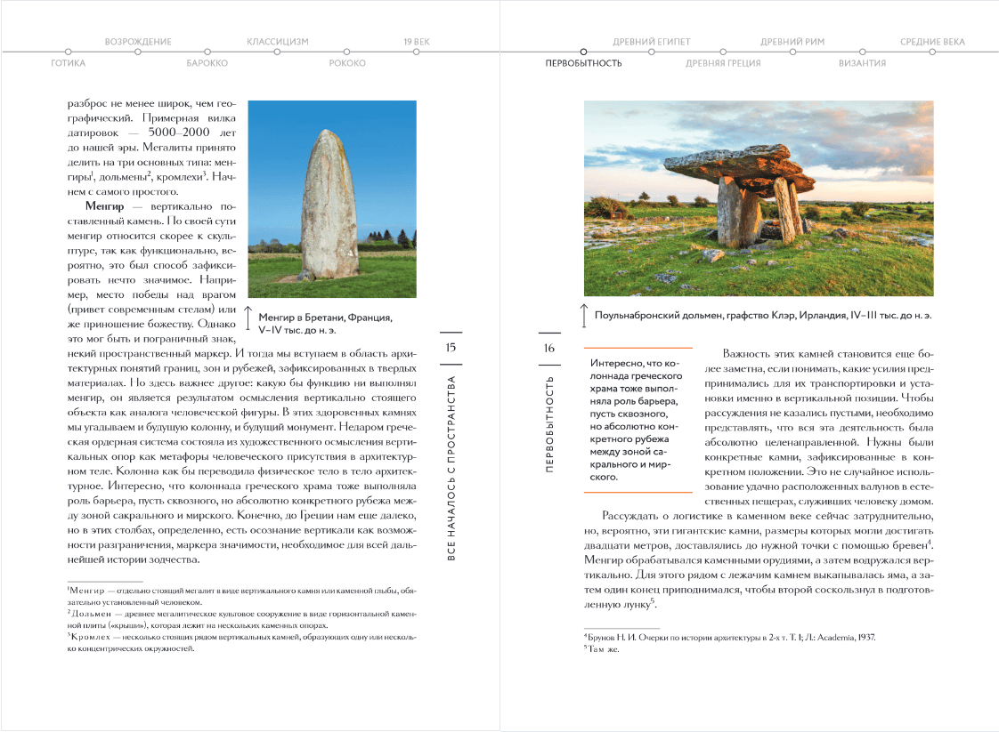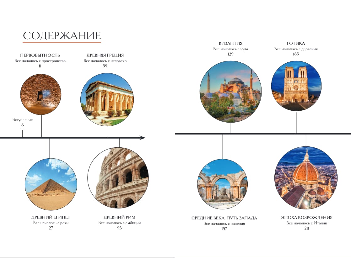 The monuments you will see in this book best characterize a particular era or style in art history. You will learn about the historical perspective, the relationship of art to culture, how art translates a certain type of thinking, and the social and political organization of society. You will get acquainted with the most famous monuments of architecture created by man over the centuries. You will see ancient temples and Egyptian pyramids, the Louvre and Notre Dame de Paris, the Pantheon and the Colosseum - and many other wonders of the world.