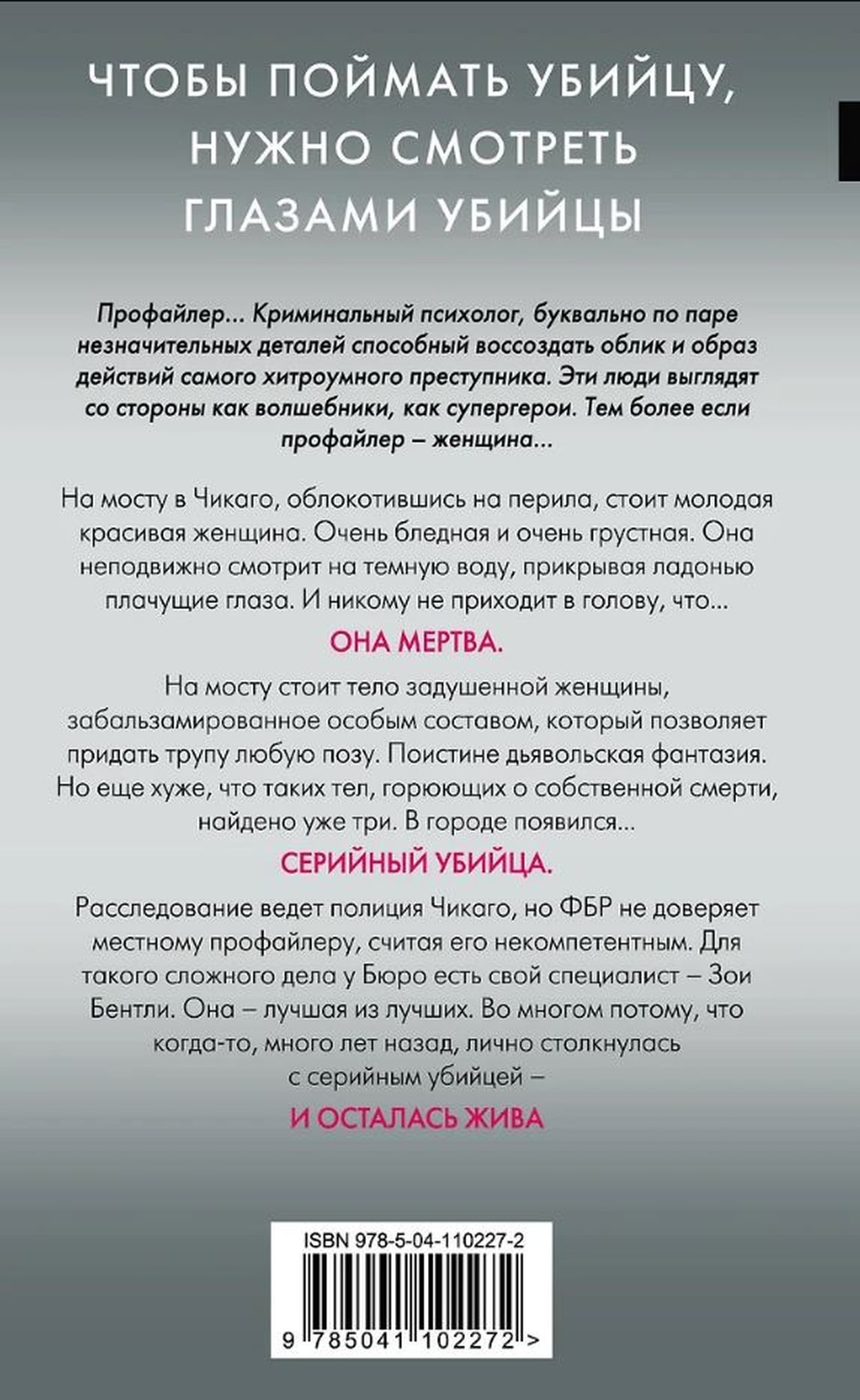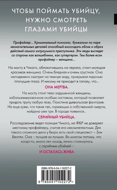 On a bridge in Chicago, leaning on the railing, stands a young beautiful woman. Very pale and very sad. She stares fixedly at the dark water, covering her weeping eyes with the palm of her hand. And it doesn't occur to anyone that... She's dead. On the bridge stands the body of a strangled woman, embalmed with a special compound that allows you to give the corpse any pose. A truly diabolical fantasy. But even worse, there are three such bodies grieving their own deaths. There's a serial killer in town. The investigation is led by the Chicago Police Department, but the FBI doesn't trust the local profiler, considering him incompetent. For such a complex case, the Bureau has its own specialist, Zoe Bentley. She's the best of the best. In large part because once, many years ago, personally faced a serial killer - and survived....