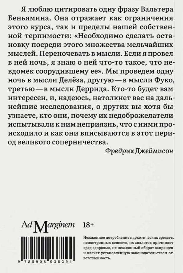 In a series of lectures for graduate and visiting students at Duke University in the spring of 2021, American philosopher and critic Fredric Jameson (1934–2024) explores major stages of French theory—existentialism, structuralism, poststructuralism, semiotics, feminism, psychoanalysis, and Marxism—by situating this turbulent period of thought within the context of significant European political events: the liberation of Paris, the Algerian War, the May 1968 uprisings, and the creation of the EU. Jameson brings the philosophical debates of this period to life, drawing on the works and lives of Sartre, Beauvoir, Fanon, Barthes, Foucault, Althusser, Derrida, Deleuze, the Tel Quel and Cahiers du Cinéma groups, and thinkers such as Rancière and Badiou, offering his perspective on one of the most important moments in intellectual history.