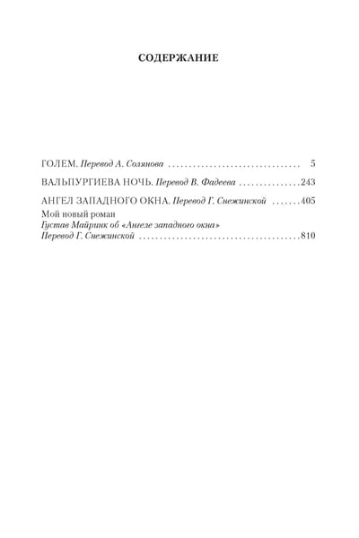Gustav Meyrinck and Franz Kafka are the brightest representatives of the so-called Prague school of literature. But if Kafka in his lifetime was known only to a narrow circle of connoisseurs, the fame of Mayrink rattled throughout Europe. And after the publication of the novel "Golem" went far beyond its borders. His books were read (and are still read) as fans of lightweight "horror literature" and refined intellectuals, finding in the texts of Mayrinka numerous allusions and cleverly hidden truths of ancient mystical teachings. This edition includes three of the most famous novels of the master of mystical prose: "The Golem", "Walpurgis Night" and "The Angel of the Western Window", the most significant of all the works of Mayrinc, conceived by him as the culmination of his entire oeuvre.