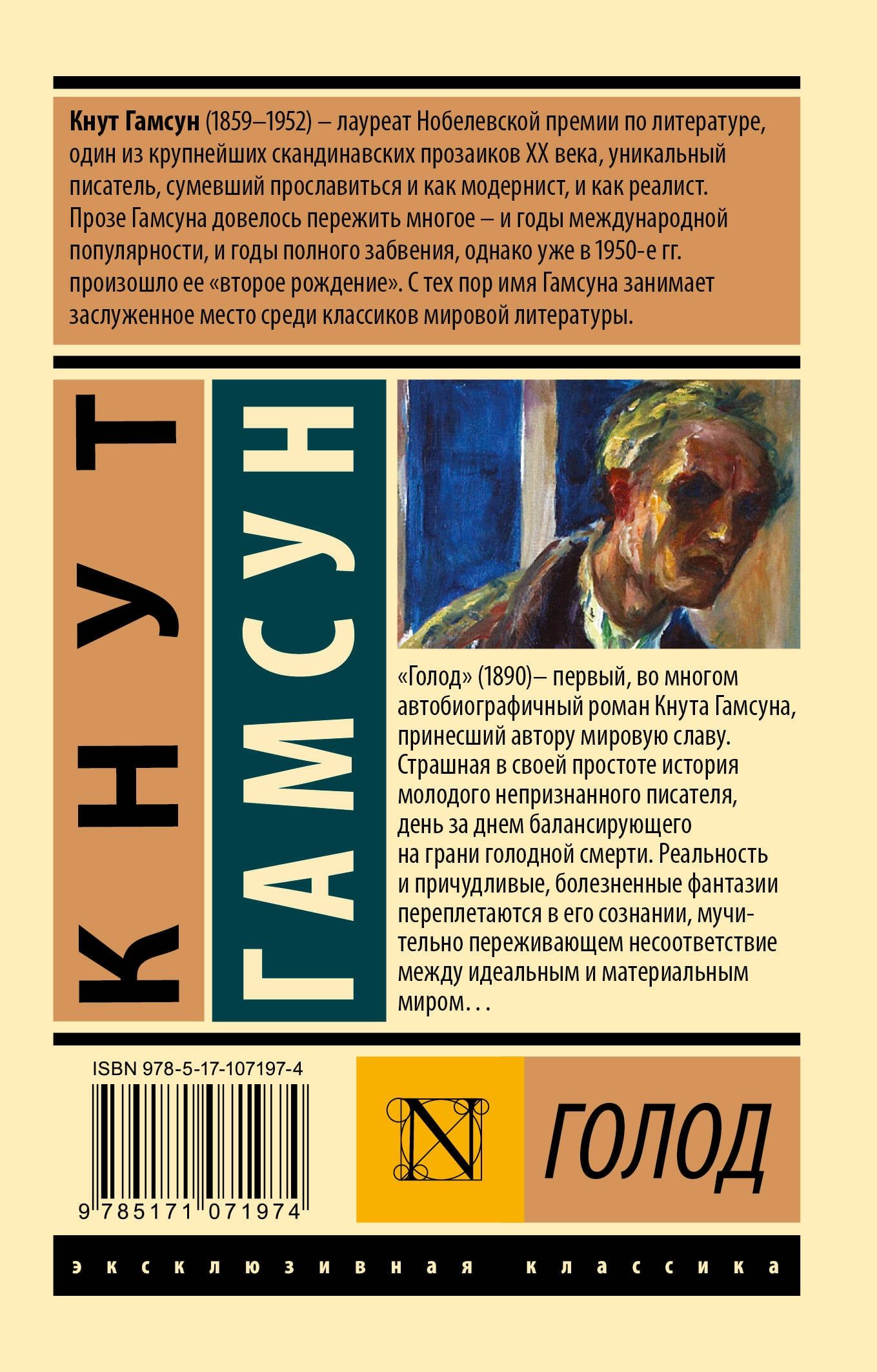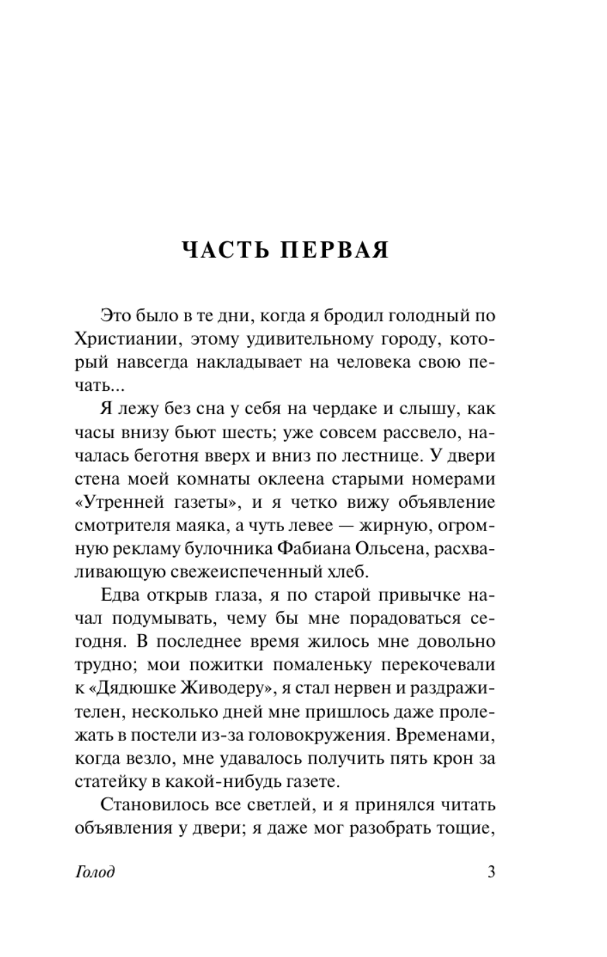 "Hunger" (1890) is a largely autobiographical novel by Knut Hamsun, which brought him worldwide fame. A terrifyingly simple story of a young, unrecognized writer, teetering day after day on the brink of starvation. Reality and bizarre, morbid fantasies intertwine in his mind, painfully experiencing the discrepancy between the ideal and the material world.